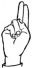 На ћирилици написано МИЛА БАЏА састоји се из 8 слова [?]. Исписано ћириличном једноручном азбуком за глувонеме: